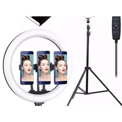 14-Inch Plain Ring Light with Adapter, 3 Phone Holders, Remote Control & Tripod Stand