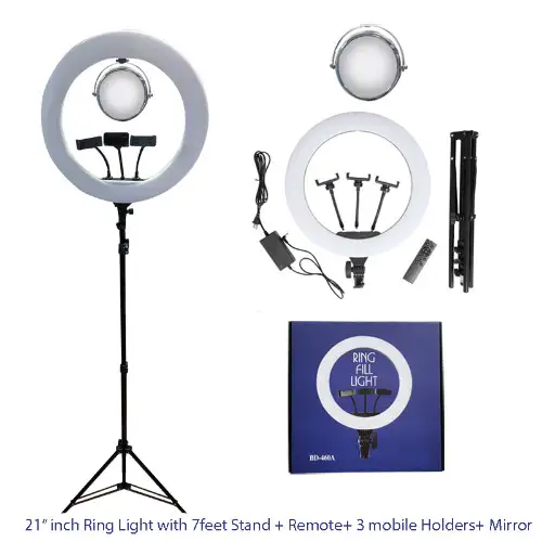 22 Inches Plain Ring Light with Remote + 3 Phone Holders + Adaptor Plug + Tripod Stand – Short Description with SEO