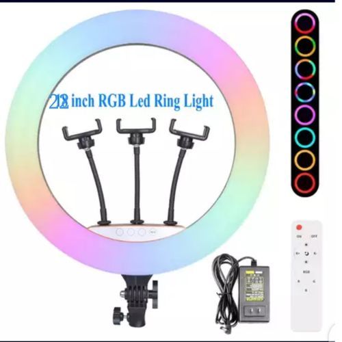 22 Inches RGB Ring Light with Remote + 3 Phone Holders + Adaptor Plug + Tripod Stand