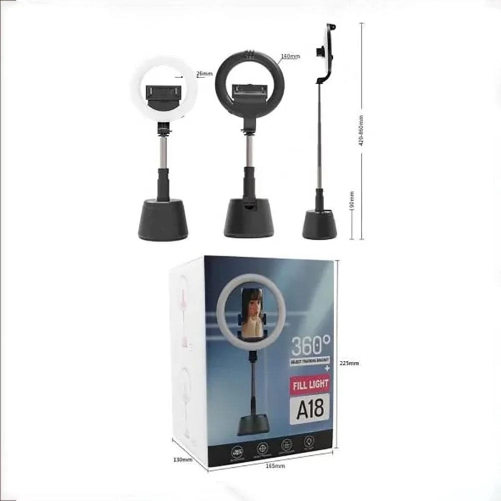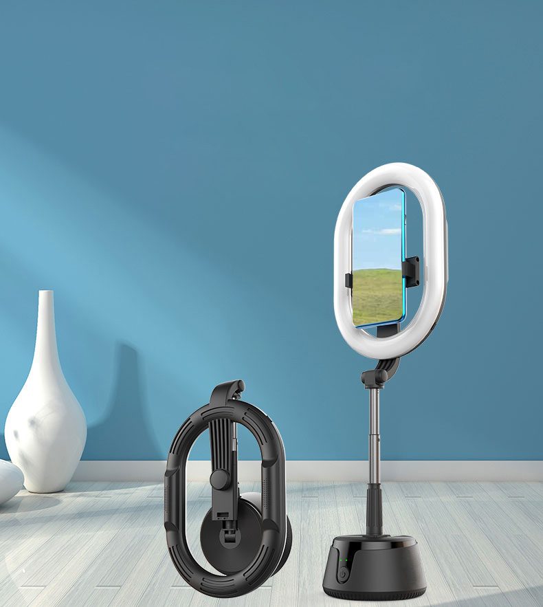 360° Object Tracking Live Streaming Light – Foldable LED Ring Light with Phone Holder & Face Recognition