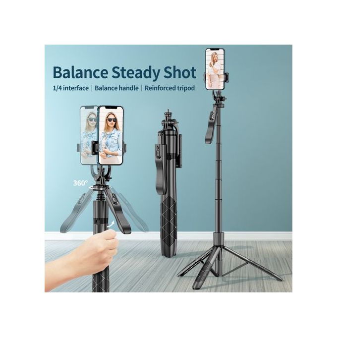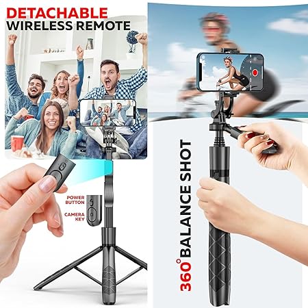โ 4-in-1 Design โ Combines a selfie stick, tripod stand, phone holder, and Bluetooth remote in one device.
