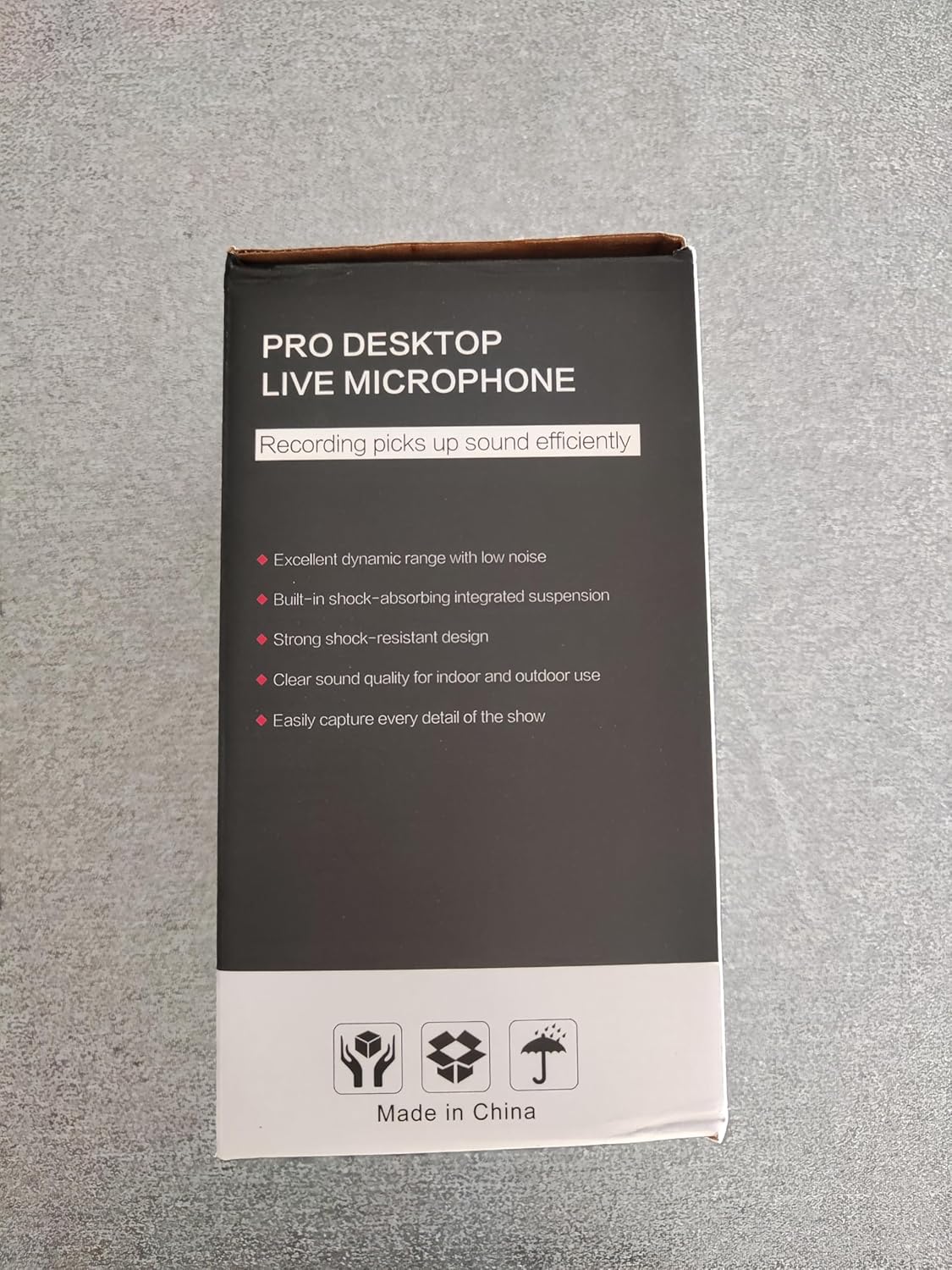 The package includes 1 USB microphone, 1 desktop stand, 1 USB cable, and a user manual – everything you need to start recording or streaming right away.