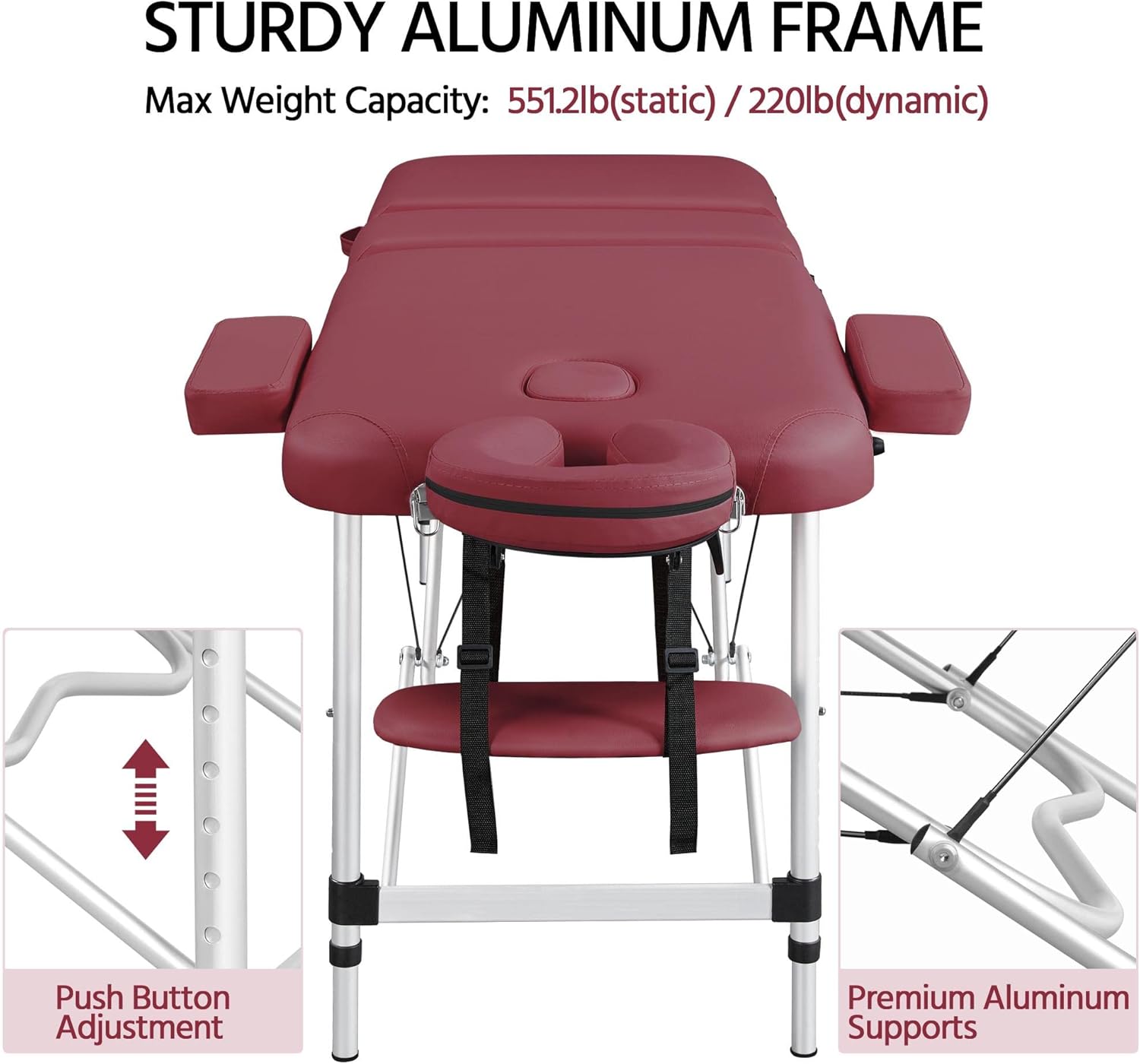 Yaheetech Burgundy Portable Lash Bed ā Folding Massage Table for Spa, Tattoo & Eyelash Extensions