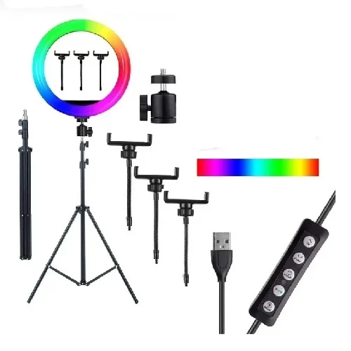 14 Inches RGB USB Ringlight+3 Holder, Remote Control & Tripod Stand